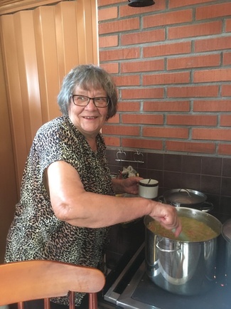 Pirkko Latvala valmisti hyvää hernekeittoa kökkäruokana. Hyvää oli!