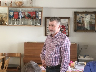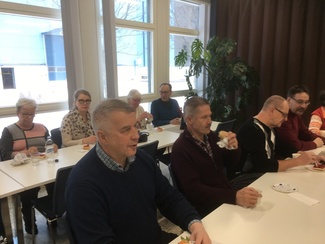 Hämeenlinnan Karjala-Seuran puheenjohtaja Sulo Rasilainen kertoi leppoisasti perinteikkään Karjala-Seuran toiminnasta.